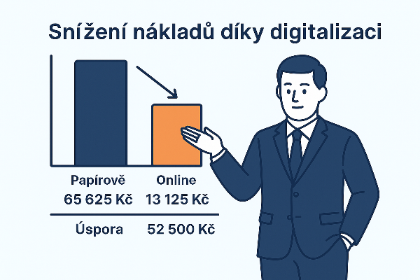 Takže jen digitalizací procesů jsme ušetřili 52.500 Kč za měsíc, za rok tedy 630.000 Kč
